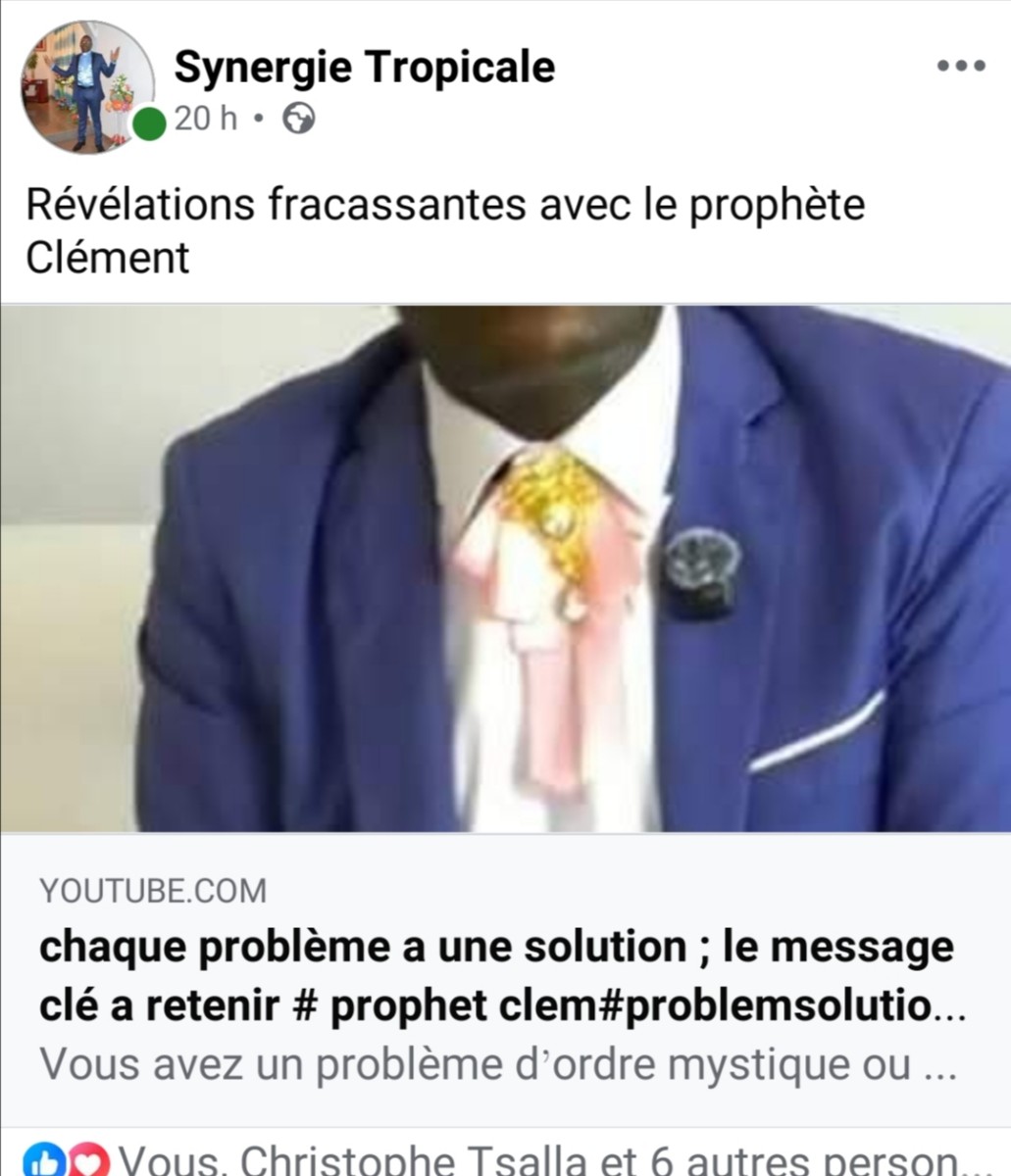 This is my spiritual father (biological father, biological mother, brother, sister, in short the whole family) the PROPHET CLEMENT, he is in Cameroon